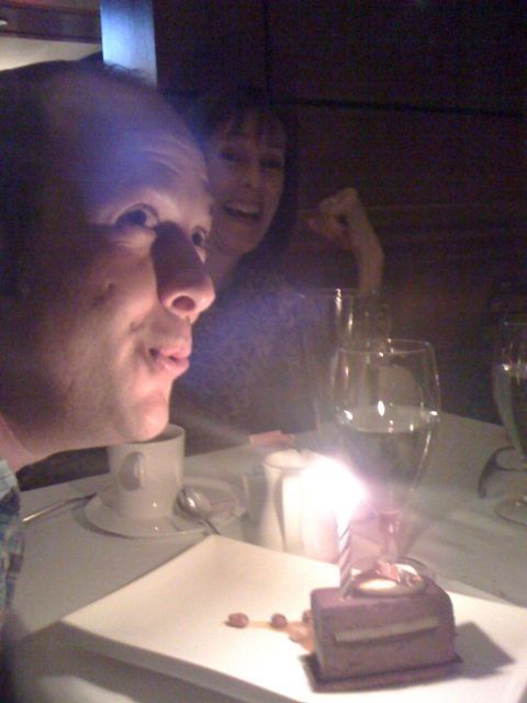 Below, Jay Asher, author of “Thirteen Reasons Why,” blows an (early) wish for his 34th birthday here in Florida…a long way from home…at dinner with Peg Kehret, Stephanie Tolan, Leslie Helakowski, Marie and I.