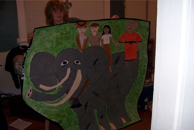 Thank you for all the great books you have written. I wanted to share a painting my 12 year old son, Samuel did for a book report on Elephant Run this past month. As an audiovisual for his report he decided to do a picture of Jackson and Nick Freestone, Mya, and Hilltop on Hannibal. He worked quite hard on it and included so much detail. The result was a beautiful painting that I love and hope you will enjoy as well. Your book was truly inspiring! If you are ever in Kentucky for any reason we would love to meet you. We are great fans!