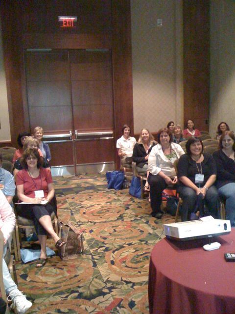 I told this great group of libraians and teachers (pictured below) that I could post something in my journal as I was talking to them. To prove my point, and skill at multi-tasking (ha!), and the fact that I have an iPhone, and that I know how to use the iPhone…here it is.