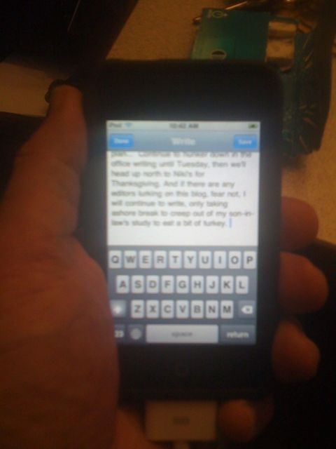 Continue to hunker down in the office writing until Tuesday, then we’ll head north to Niki’s for Thanksgiving.