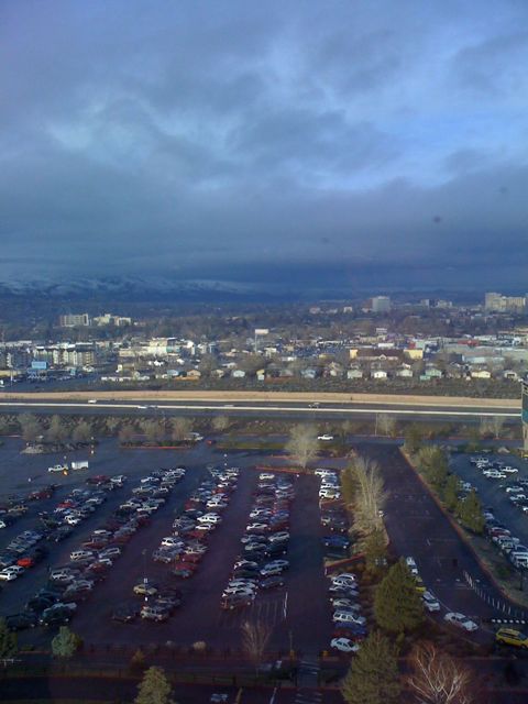 View from the 14th floor of Grand Sierra Resort and Casino with a storm brewing.