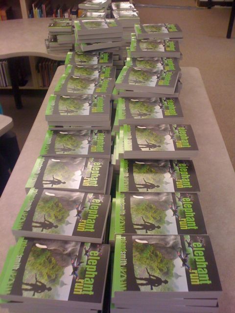 Second task: sign 250 copies of “Elelphant Run” which they are giving away (I told you this was a good conference) in the library with our old friend librarian, Barbara Talbot.