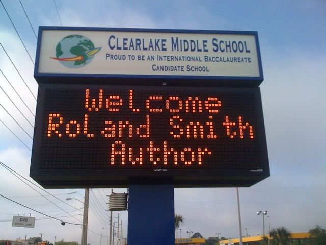 I’m back with my friends at Clearlake Middle School in Cocoa, Florida for my 4th time in the past ten years. Hitched a ride from Melbourne with principal Mark Mullins. It’s a great school with very cool 7th and 8th graders. I got the chance to speak to all of them today.